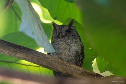 Tan pronto como amaneció salimos de nuevo a dar una vuelta por el terreno del hotel. Y si bien los herpetos se hicieron de rogar, los pájaros fueron más amables. Vimos varias especies de guacamayos o lapas como las llaman los ticos. Entre ellos el guacamayo rojo (Ara macao) que es una especie característica de esta zona de Costa Rica. También vi el primer colibrí de mi vida. Una de las chicas de la recepción nos enseñó una pareja de buhitos que se pasan el día en un árbol cerca de la entrada del lodge y de regalo vimos una ardilla, el primer mamífero del viaje.